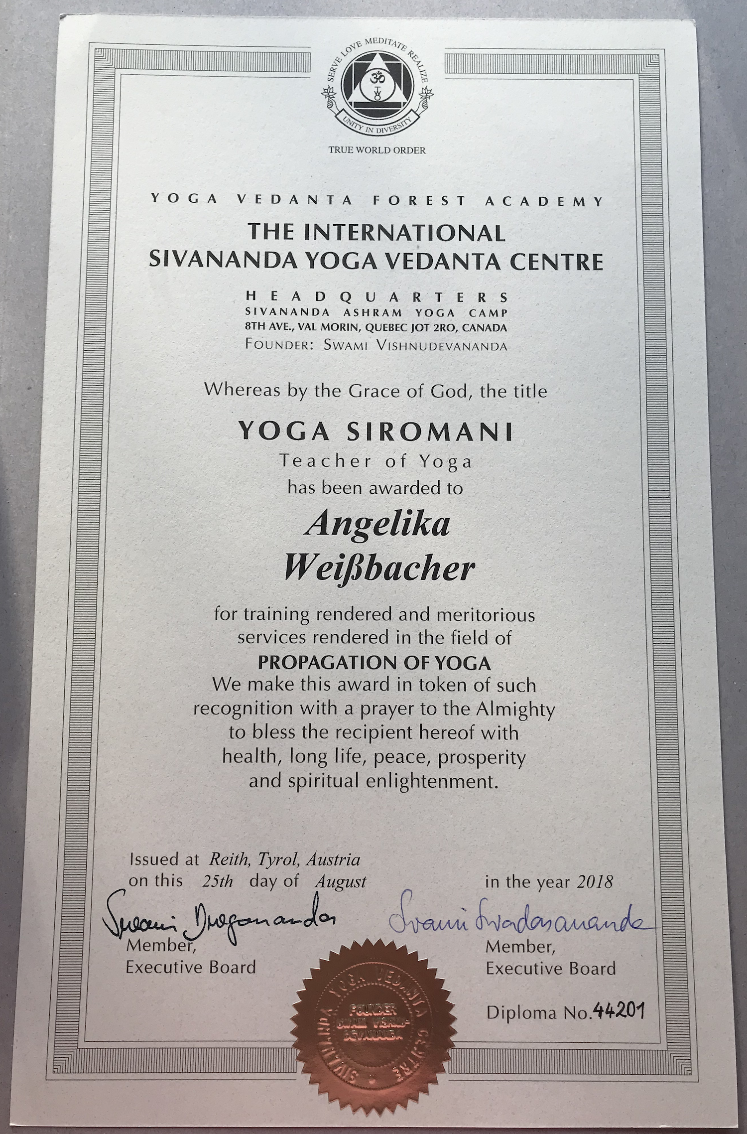 - 2018: Zertifizierte Sivananda-Yogalehrerin (TTC - Teachers Trainings Course)